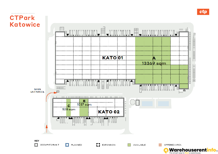 CTPark Katowice offers a wide range of opportunities for customers looking for production and warehouse space. The park is located in an attractive urban area and is equipped with the necessary infrastructure, enabling customers to efficiently conduct operations. The proximity of the center of Katowice, the heart of the Upper Silesia region, as well as the good access to the A1 and A4 motorways make CTPark Katowice an excellent location for logistics.